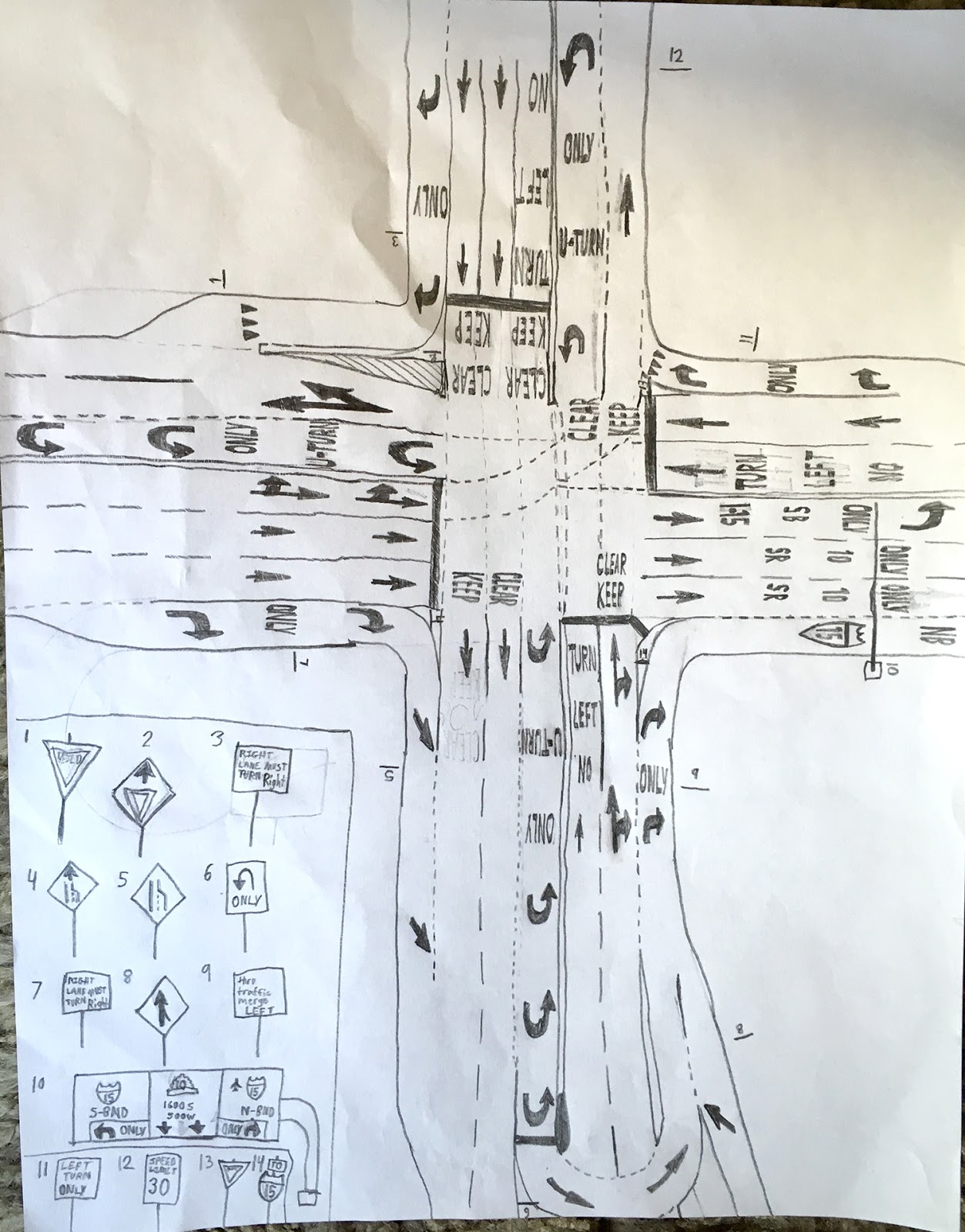 This one is a real intersection (that weird one in Draper…if you've been there you know the one. You have to do a mandatory U-turn instead of a left turn). The other one may be too, for all I know. Seb loves to draw arrows and write words in that enlongated font they use on the road to make it look normal-sized when you are driving quickly over it.
