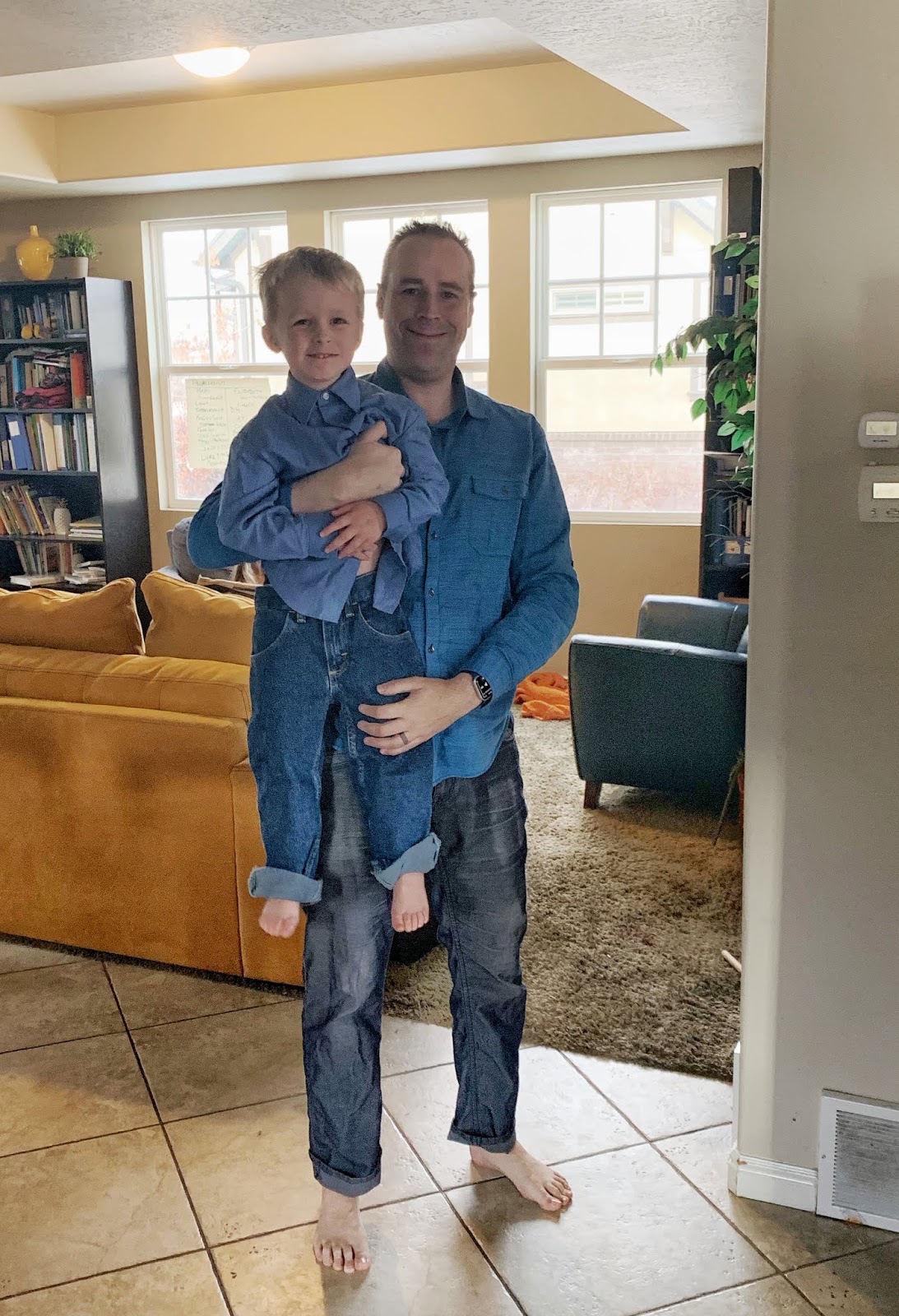 | Teddy came to Sam and said, "Daddy, match me!" So Sam did—right down to the rolled cuffs :) |