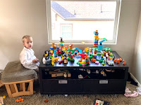Things started to seem almost right and familiar again. Babies (labeled "Boy" by someone who got a little too enthusiastic with the label-maker) crawling around. Boys wearing hats, suit coats, and underpants. Kids making "rides" for other kids. Girls reading in strange and unlikely spots. And our food storage room, every item in which I had agonized over having to pack up ("WHY didn't I stop buying pinto beans?") but which I truly love having and is a thing of beauty in this new house. We really will eat all that food within a year, and more will be rotated in.