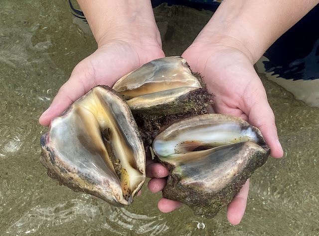 When they set it down, the crab scuttled off into the water on its huge legs. Seb followed it and got a video, but it is hard to even see how BIG it is once it's in the water! We read that crabs that big can be fifty or sixty years old!