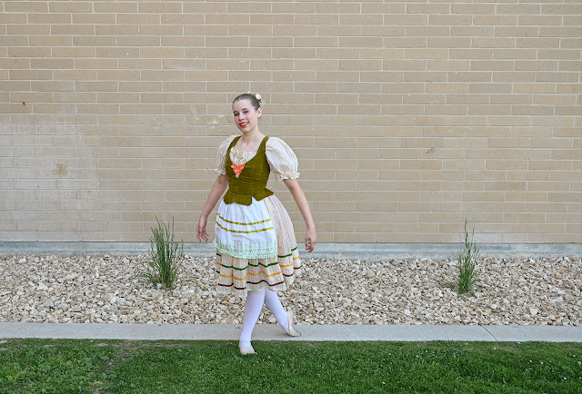 The spring ballet this year was Coppelia, which I'd heard of but never seen. It's a weird story, to be honest. A mechanical doll (who gets mistaken for a real girl, and later switched with a real girl, of course) figures into it. The other characters are things like "villagers" and "harvesters" and "friends." My girls were…some of those things. (I realize I don't even know which. Villagers, perhaps?) They had pretty costumes and looked beautiful in their dances, several of which (I have it on good authority) were quite hard!